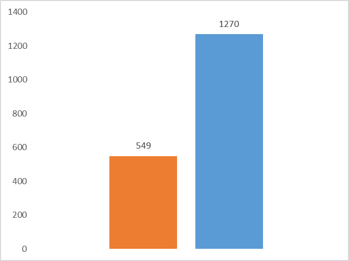 Были изменены три страницы сайта. Эффект от проведенной нами работы составил 1270 посещений при первоначальных значениях в 549 посещения. Таким образом прирост посещений составил 2,3 раза.